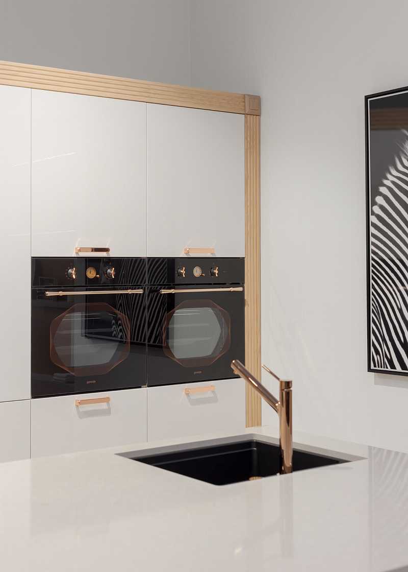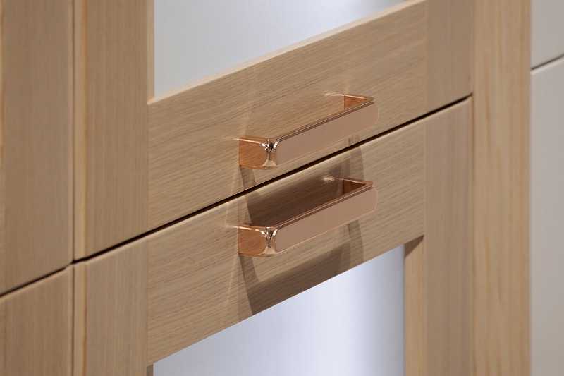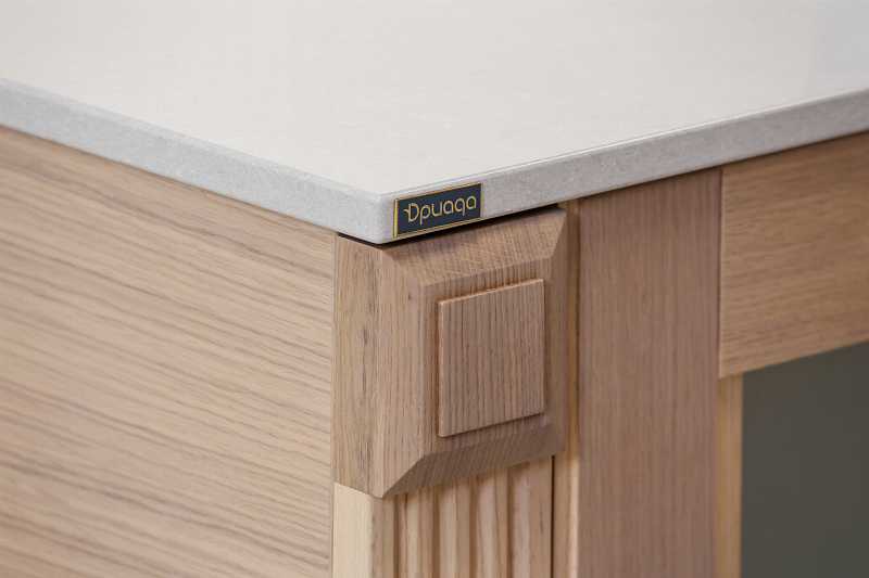 Smooth and natural hues of oak veneers on respectable front panels, eclectic decorations of solid wood reveal the complexity of this model. One can easily imagine it in many interior styles ranging from Neoclassic to Bavarian. Natural tints remain relevant in modern living space.