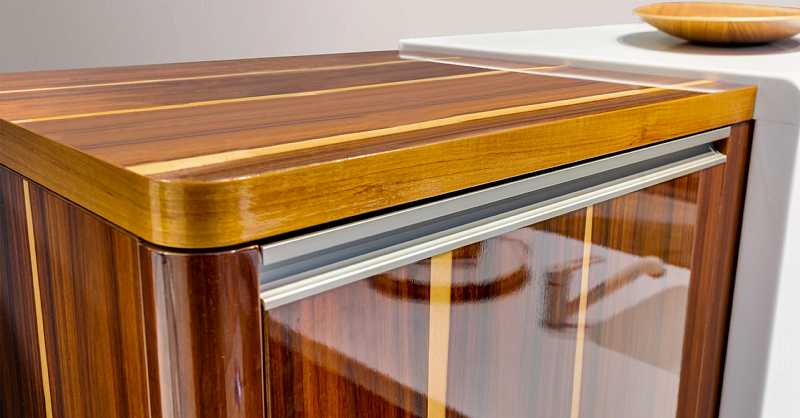 Front panels decorated with rosewood or satin walnut veneers demonstrate a wonderful combination of natural texture and high technology.